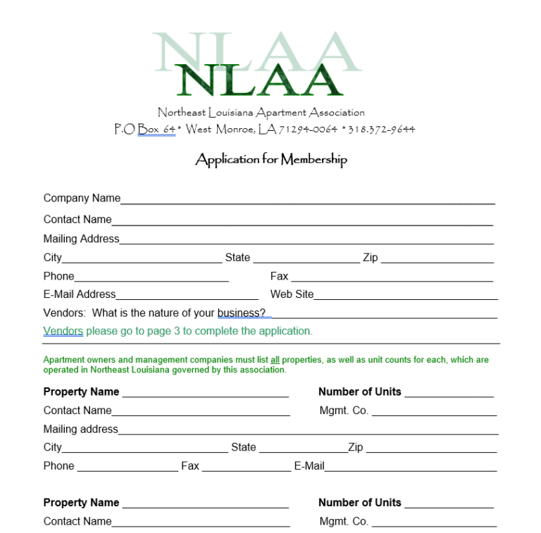 To apply for membership please click on the application, complete online, save and email to nlaa.monroe1@gmail.com or print, complete and mail to: